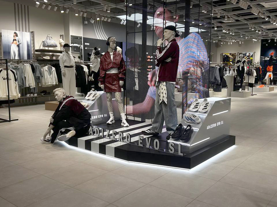 Портфоліо: Інсталяція рекламної кампанії ADIZERO EVO SL в магазинах Adidas